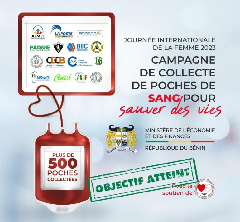 Le ministre d’Etat chargé de l’Économie et des Finances Romuald Wadagni en collaboration avec l’Agence Nationale de Transfusion Sanguine (ANTS) a organisé la semaine dernière, une campagne de don de sang. Le but de cette collecte est d’accroître les stocks de la banque du sang et contribuer à une amélioration des services de soins de santé pour des milliers de Béninois.  Au total, 512 poches ont été collectées.    Par ailleurs, dans la même optique de sauver des vies, l’Amicale des Femmes du Ministère en charge des Finances (AFMEF) a fait don de deux Défibrillateurs Externes Automatiques (DEA) au Centre Hospitalier Universitaire de la Mère et de l’Enfant (CHU-MEL) et au Centre National Hospitalier et Universitaire Hubert Koutoukou Maga (CNHU-HKM) de Cotonou. Le défibrillateur est en effet un appareil portatif facile à utiliser, qui permet de réanimer le cœur d’une personne victime d’un arrêt cardiaque.