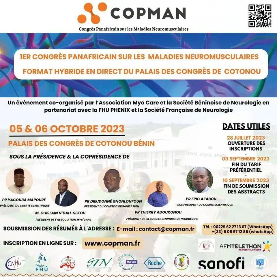 Il se tient depuis ce jeudi 05 octobre 2023 au palais des congrès de Cotonou, le 1ᵉʳ congrès panafricain sur les maladies neuromusculaires. Cette rencontre hospitalo-universitaire de deux jours sera l’occasion pour les congressistes d’échanger sur leurs pratiques cliniques, mais également sur les dispositifs mis en œuvre dans leurs pays pour améliorer la vie des patients. Les maladies du nerf et du muscle constituent un groupe de pathologies très présentes en Afrique.