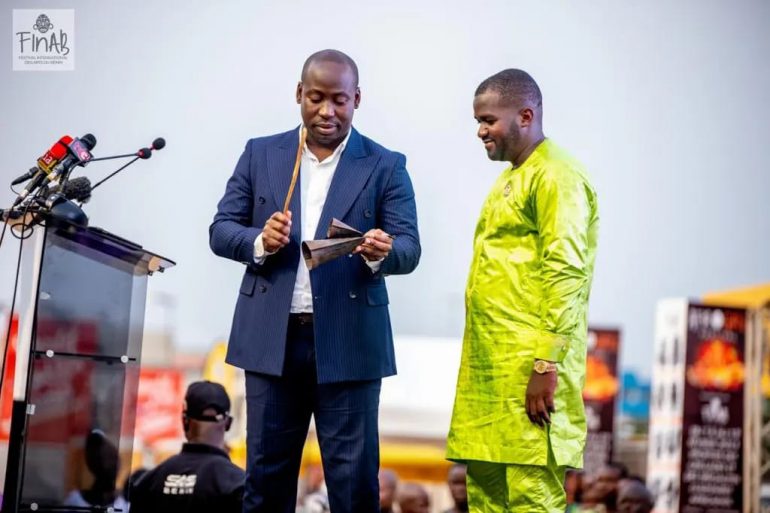 Le Festival International des Arts du Bénin (FInAB) aura lieu tous les deux ans. C’est le Ministre des Sports, Oswald Homeky chargé de l’intérim du Ministre du Tourisme, de la Culture et des Arts qui a lancé officiellement cette première édition du festival international des arts du Bénin. Après avoir invité les acteurs culturels, personnalités politiques et tout le peuple à soutenir Ulrich Adjovi dans ses initiatives, il n’a pas manqué de féliciter le jeune opérateur économique pour son audace et son ingéniosité à créer le Festival international des arts du Bénin (FInAB). Oswald Homeky au micro de Erwane Oliyidé.