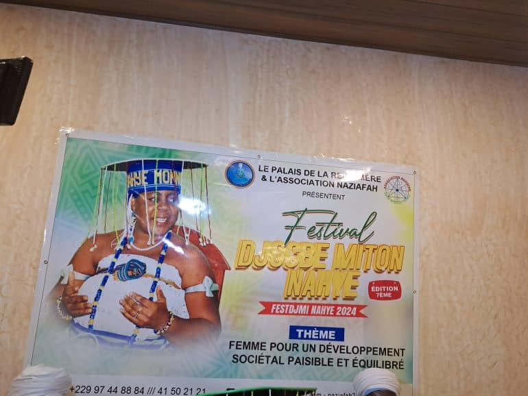 Au Bénin, la programmation de la 7ᵉ édition du Festival Djogbé Miton Nahyé (FESTDJMI-NAHYE) 2024 a été dévoilée mardi 28 novembre à Cotonou. C’est à travers une conférence de presse convoquée par le palais de la reine mère NAHYÉ KO’NDODO TODEGLA et l’association naziafah. Cette 7ᵉ édition du Festival Djogbé Miton Nahyé a pour thème : femme pour un développement sociétal paisible et équilibré. Elle va se tenir à Allada du 08 au 14 janvier 2024. La conférence de presse s’est tenue en présence de Rachelle Kpassassi. Compte rendu.
