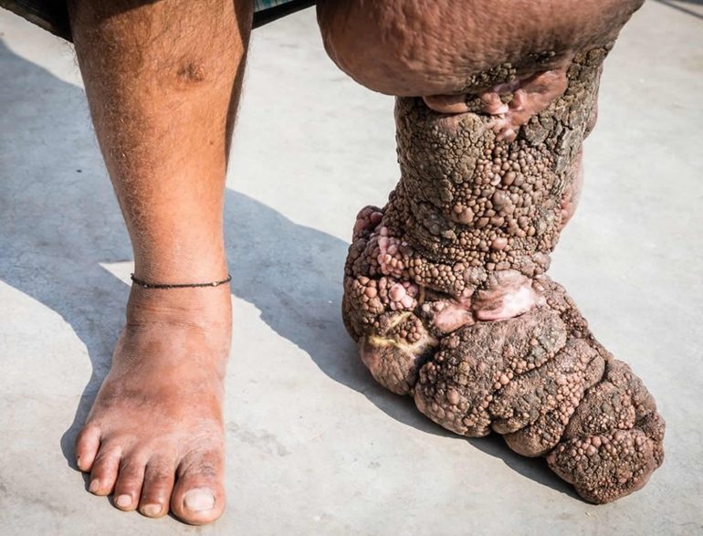 Eléphantiasis, une des causes d’infertilité et d’insuffisance rénale chez les hommes.