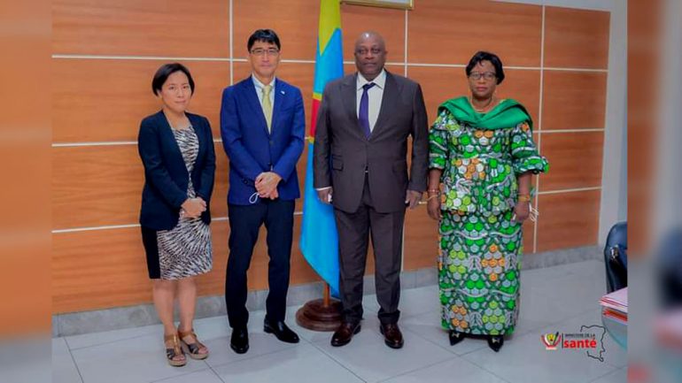 En RDC, le Ministre de la Santé Publique, Hygiène et Prévention, Dr Jean-Jacques Mbungani a reçu en audience, mercredi 06 Juillet 2022, le nouveau Représentant Résident de l‘Agence Japonaise de Coopération Internationale (JICA), Murakami Hironobu ,en République Démocratique du Congo. Les deux hommes ont échangé notamment sur le renforcement de la coopération entre le Japon et la RDC en vue de la réalisation des activités de l’Agence Japonaise en RDC.